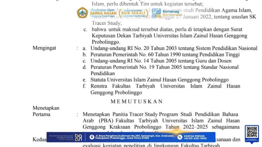 Probolinggo, 03 Oktober 2025 – Rektor Universitas Islam Zainul Hasan Genggong (UNZAH Genggong), Assoc. Prof. Dr. Abd. Aziz Wahab, M.Ag, menghadiri audiensi Dewan Pendidikan Kabupaten Probolinggo bersama Bupati Probolinggo serta Direktur Guru PAUD dan Pendidikan Non Formal dari Balai Besar Guru dan Tenaga Kependidikan (BBGP) Jawa Timur, Kementerian Pendidikan Dasar dan Menengah (Kemendikdasmen). Ruang Argopuro, […]