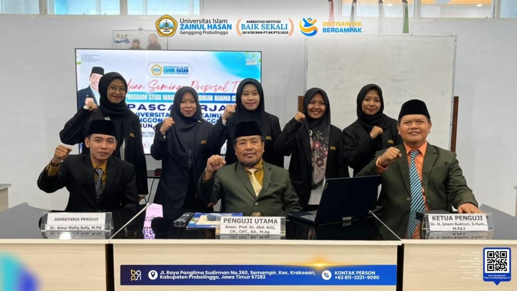 Probolinggo, 27 Oktober 2025 — Program Studi Magister Pendidikan Agama Islam (MPAI) Pascasarjana Universitas Islam Zainul Hasan (UNZAH) Genggong Probolinggo menggelar Ujian Seminar Proposal Tesis perdana bertempat di Gedung Pascasarjana lantai 4.