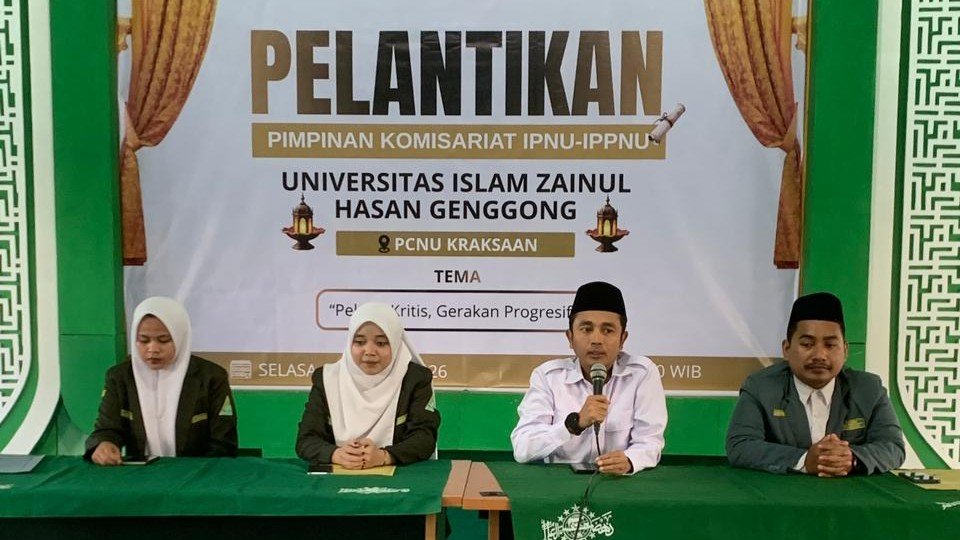 Probolinggo, 12 Maret 2026 – UNZAH Genggong kembali menorehkan catatan positif dalam pembinaan organisasi kemahasiswaan berbasis Nahdlatul Ulama. Pelantikan pengurus Ikatan Pelajar Nahdlatul Ulama (IPNU) dan Ikatan Pelajar Putri Nahdlatul Ulama (IPPNU) Pimpinan Komisariat (PK) Universitas Islam Zainul Hasan Genggong (UNZAH Genggong) resmi berlangsung di kantor Pengurus Cabang Nahdlatul Ulama (PCNU) Kraksaan, Probolinggo pada 11 Maret 2026. Kegiatan pelantikan pengurus organisasi mahasiswa Islam ini menjadi momentum penting dalam memperkuat tradisi kaderisasi NU di lingkungan kampus UNZAH Genggong.