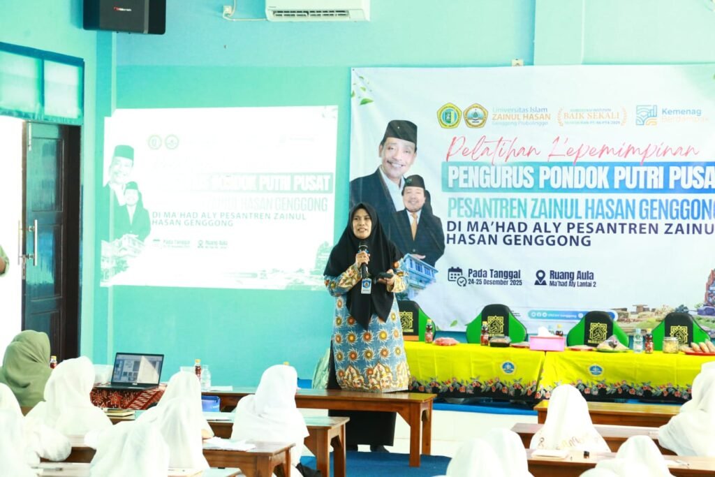 Probolinggo, 25 Desember 2025 – UNZAH Genggong melanjutkan rangkaian pelatihan kepemimpinan bagi Pengurus Pondok Putri Pusat Pesantren Zainul Hasan Genggong. Kegiatan hari kedua berlangsung di Aula Ma’had Aly Zainul Hasan Genggong dengan materi strategis yang memperkuat kompetensi bahasa, karakter santri, manajemen keuangan, serta pemahaman nilai kepesantrenan.